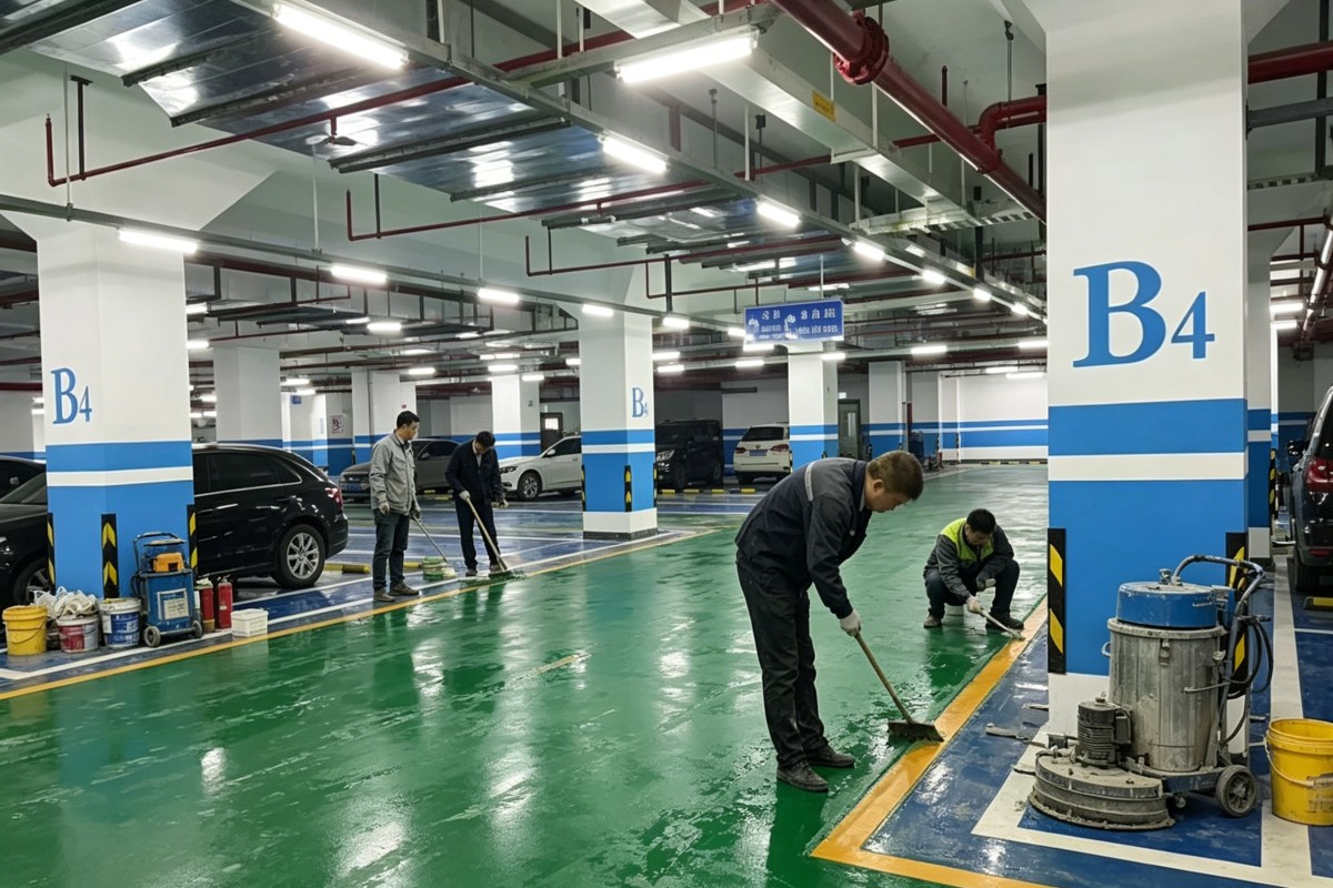衡阳蒸湘雨母山乡车库停车场环氧地坪施工厂家